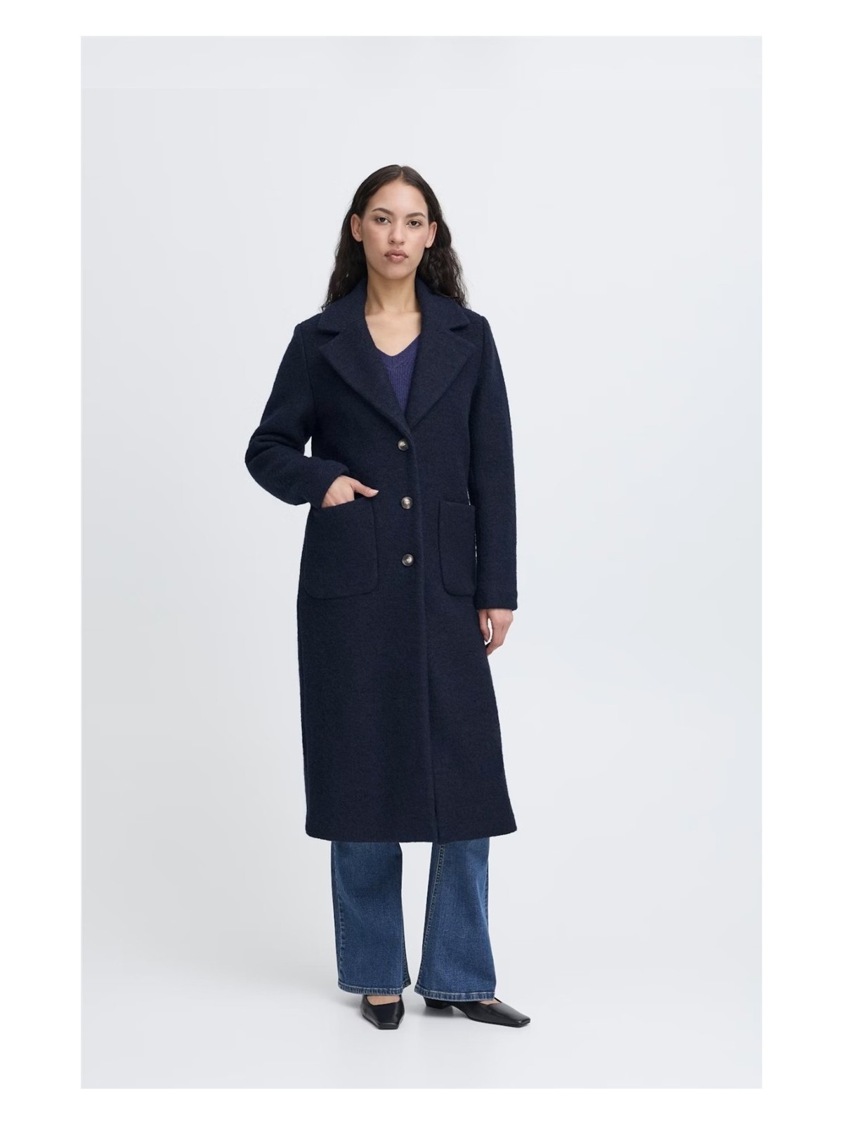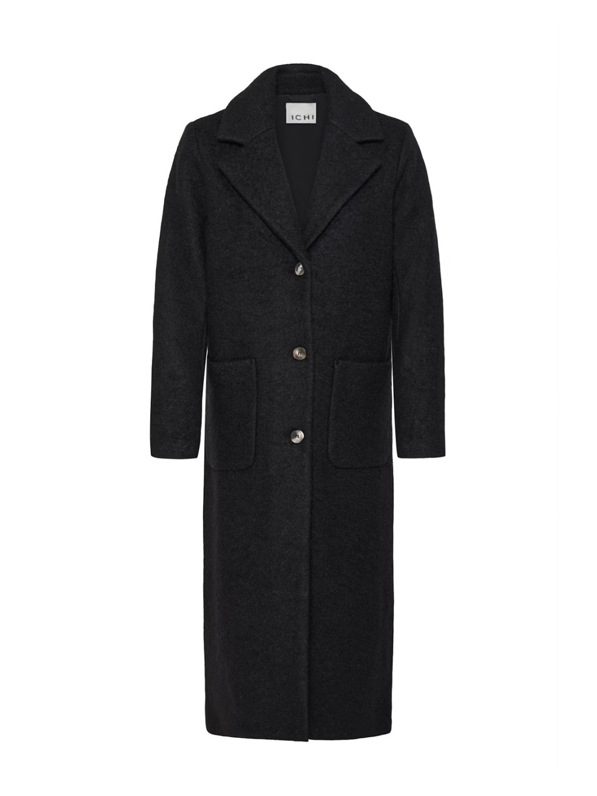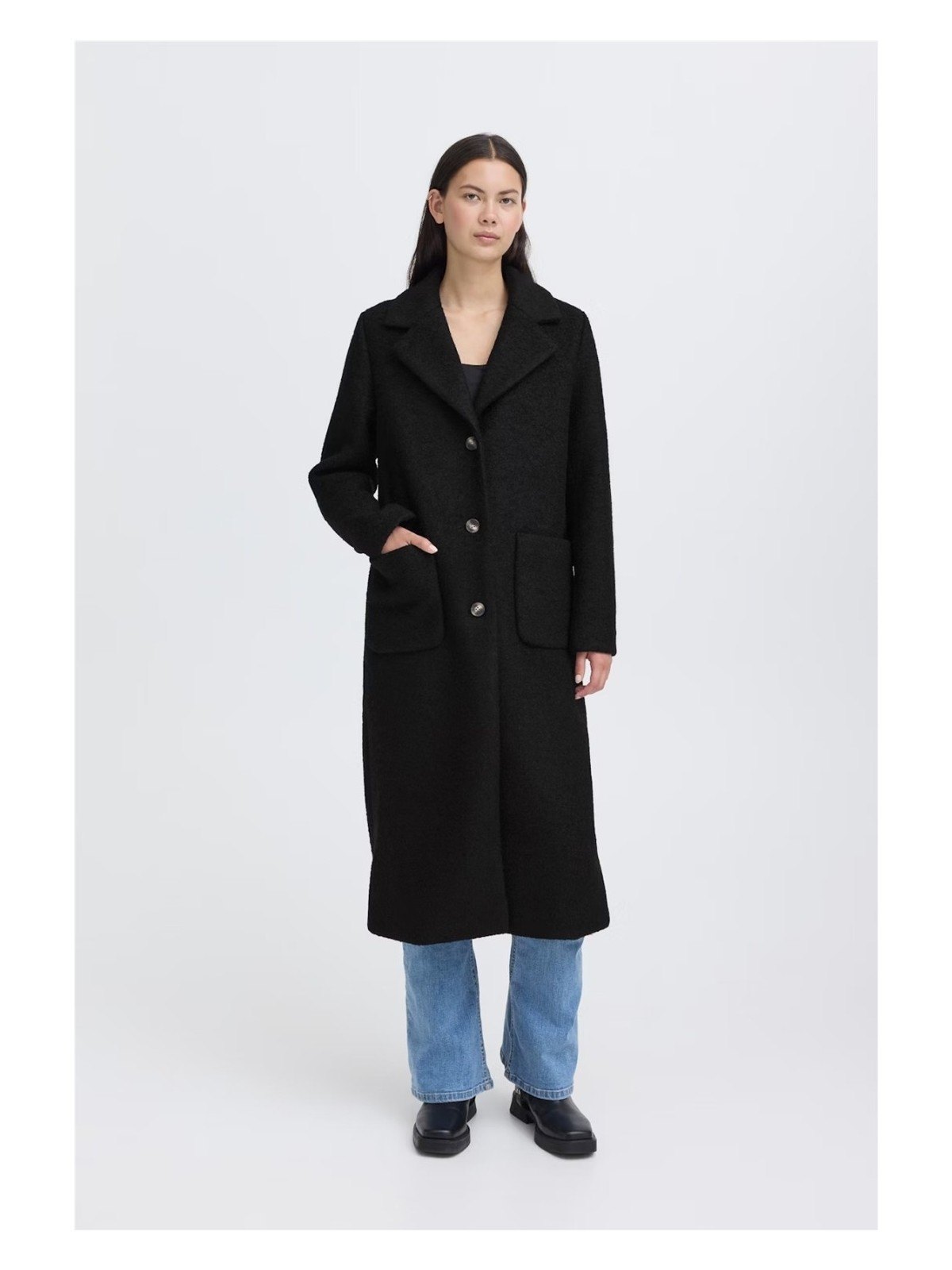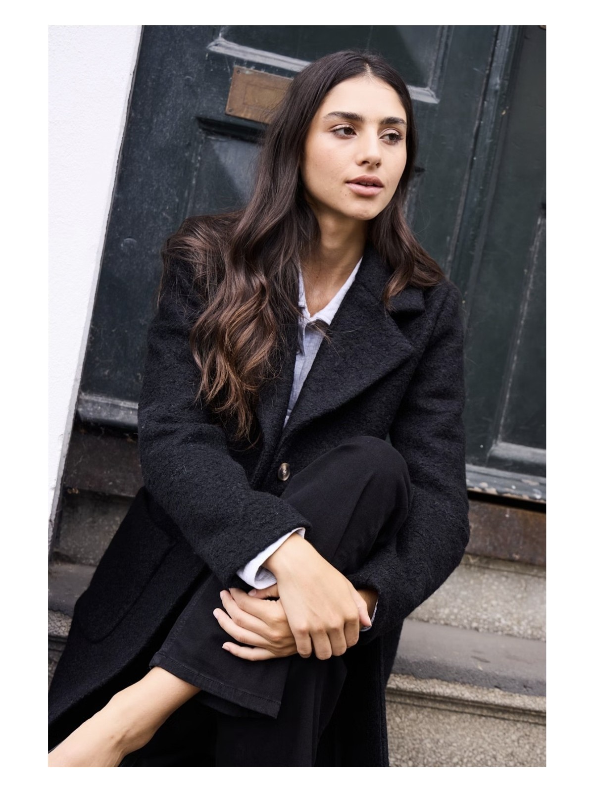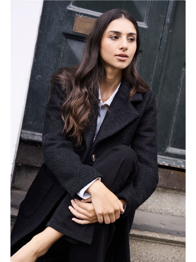 Abrigo extra largo de manga pegada y entalladito.Con solapa se cierra en la parte delantera con botones.Lleva bolsillos plastones a ambos lados.Lleva abertura en la parte de atrás. Si buscas un abrigo de fondo de armario y ajustadito, este es el tuyo.