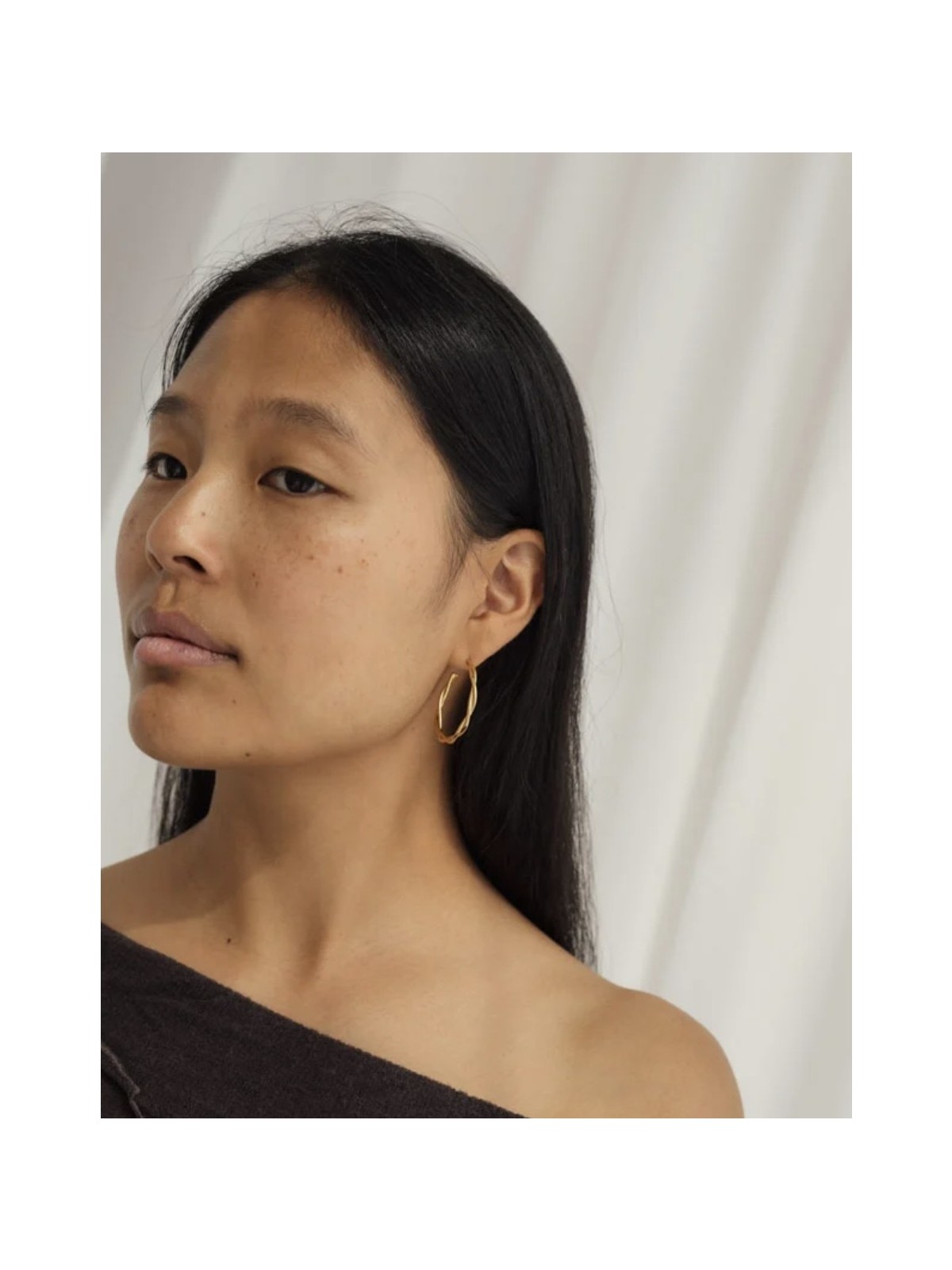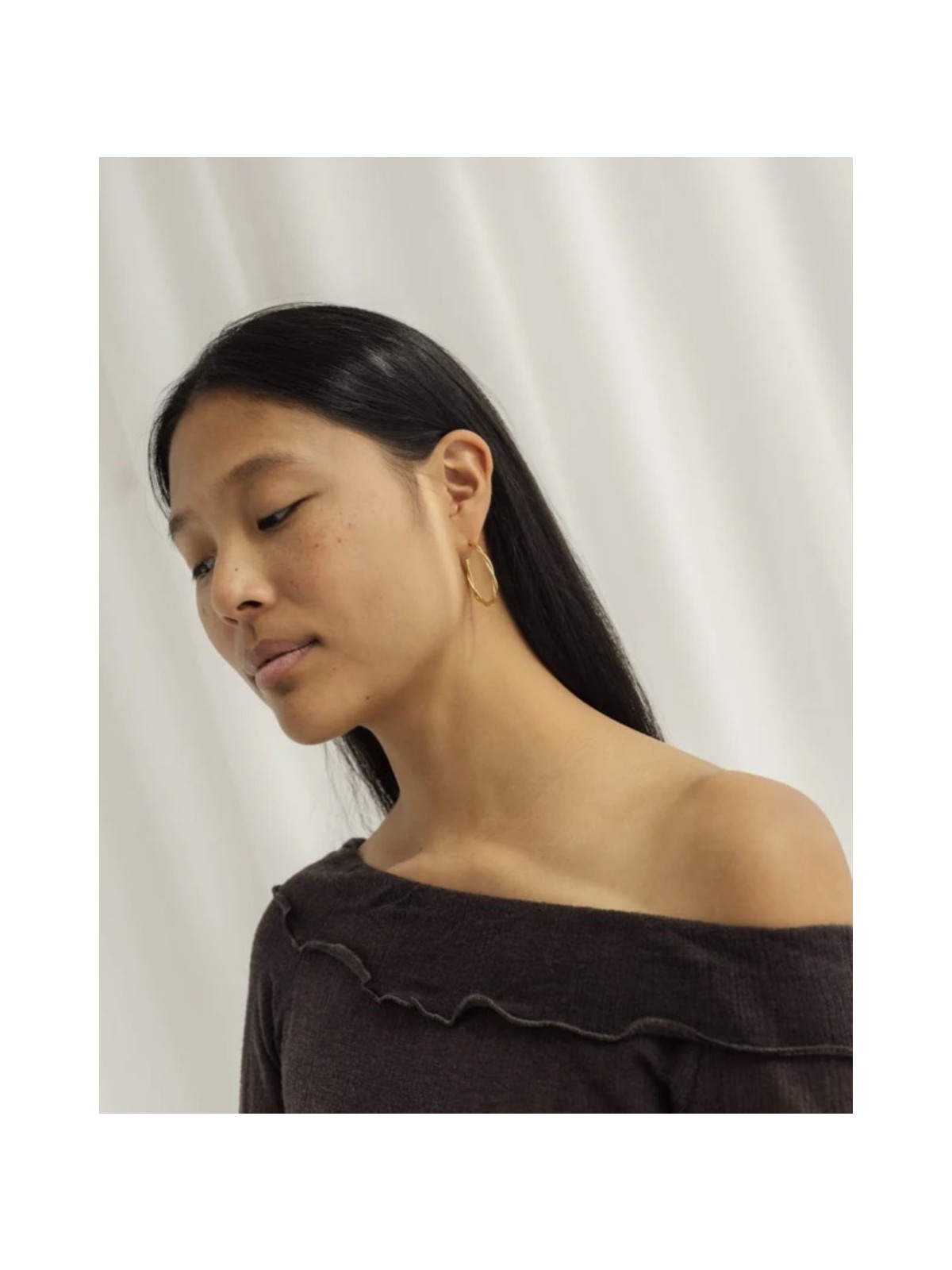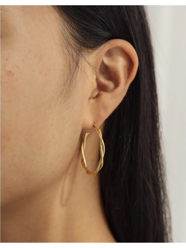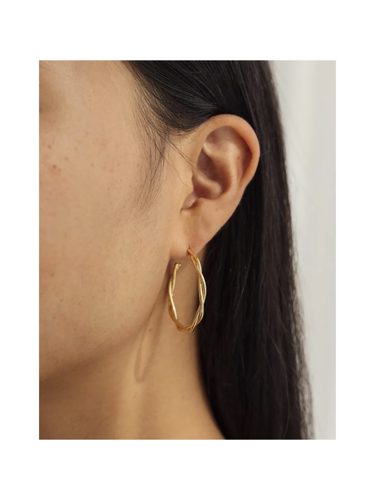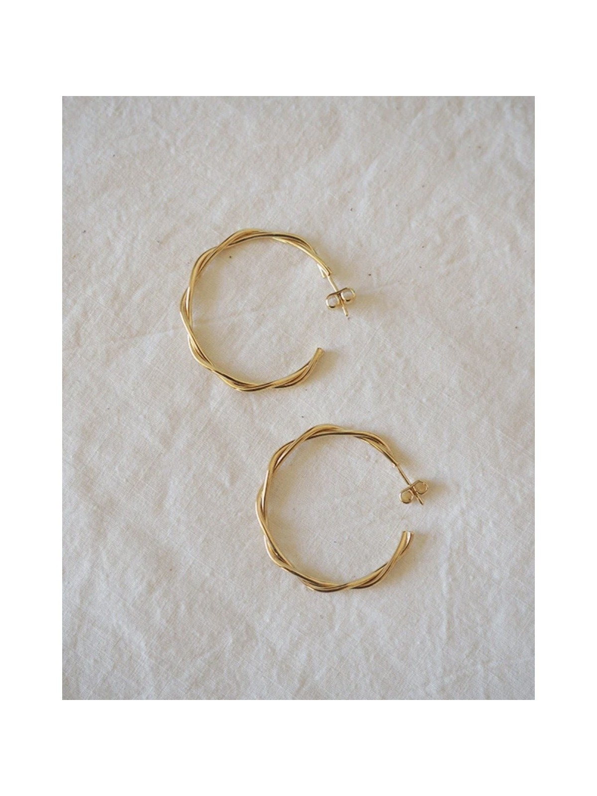 Pendientes trenzados con forma de aro de 36mm. Disponible en dos acabados : chapado en oro y en plata con 2 micras de espesor y base de latón libre de niquel y de plomo. El cierre es a presión.